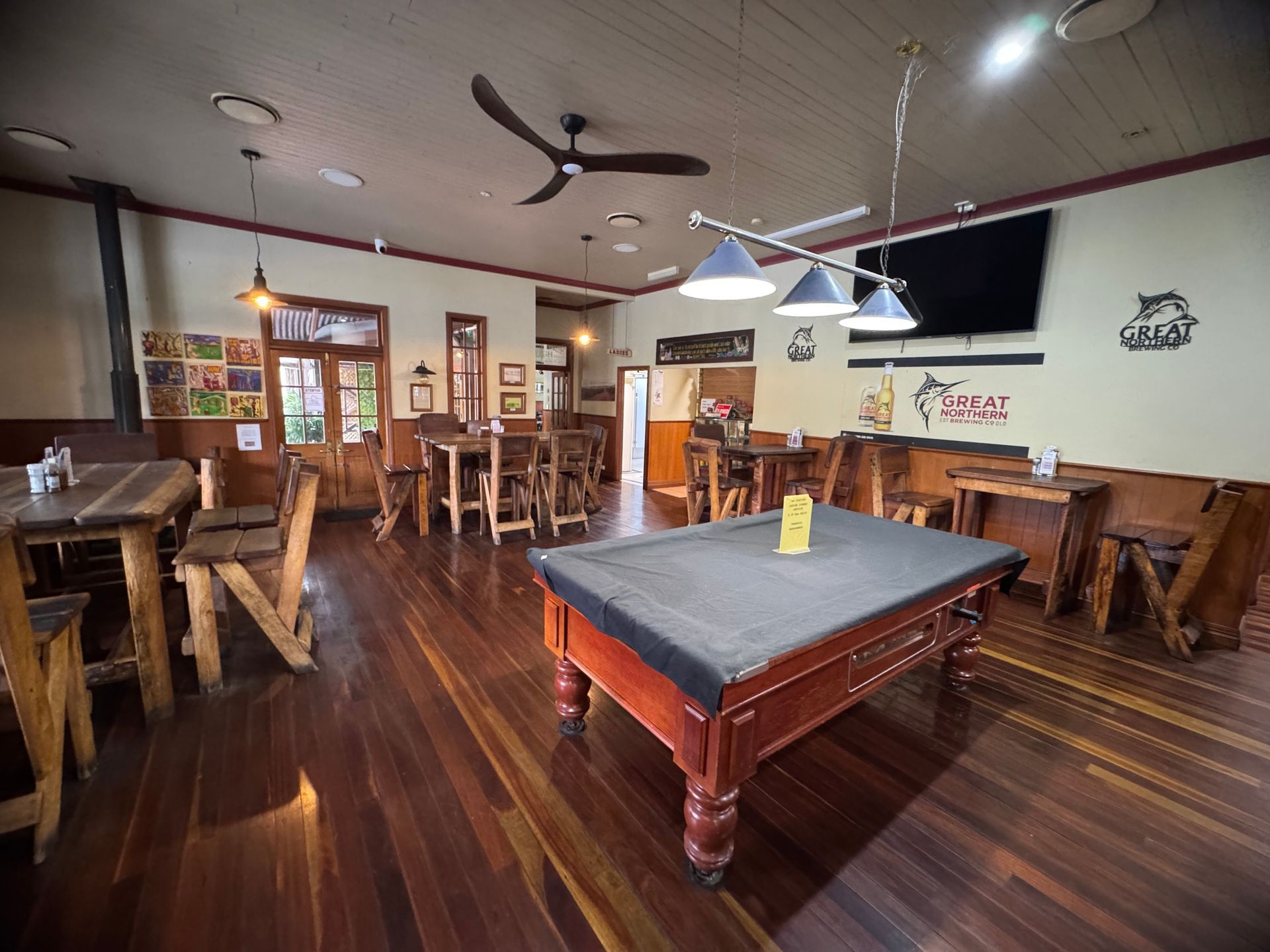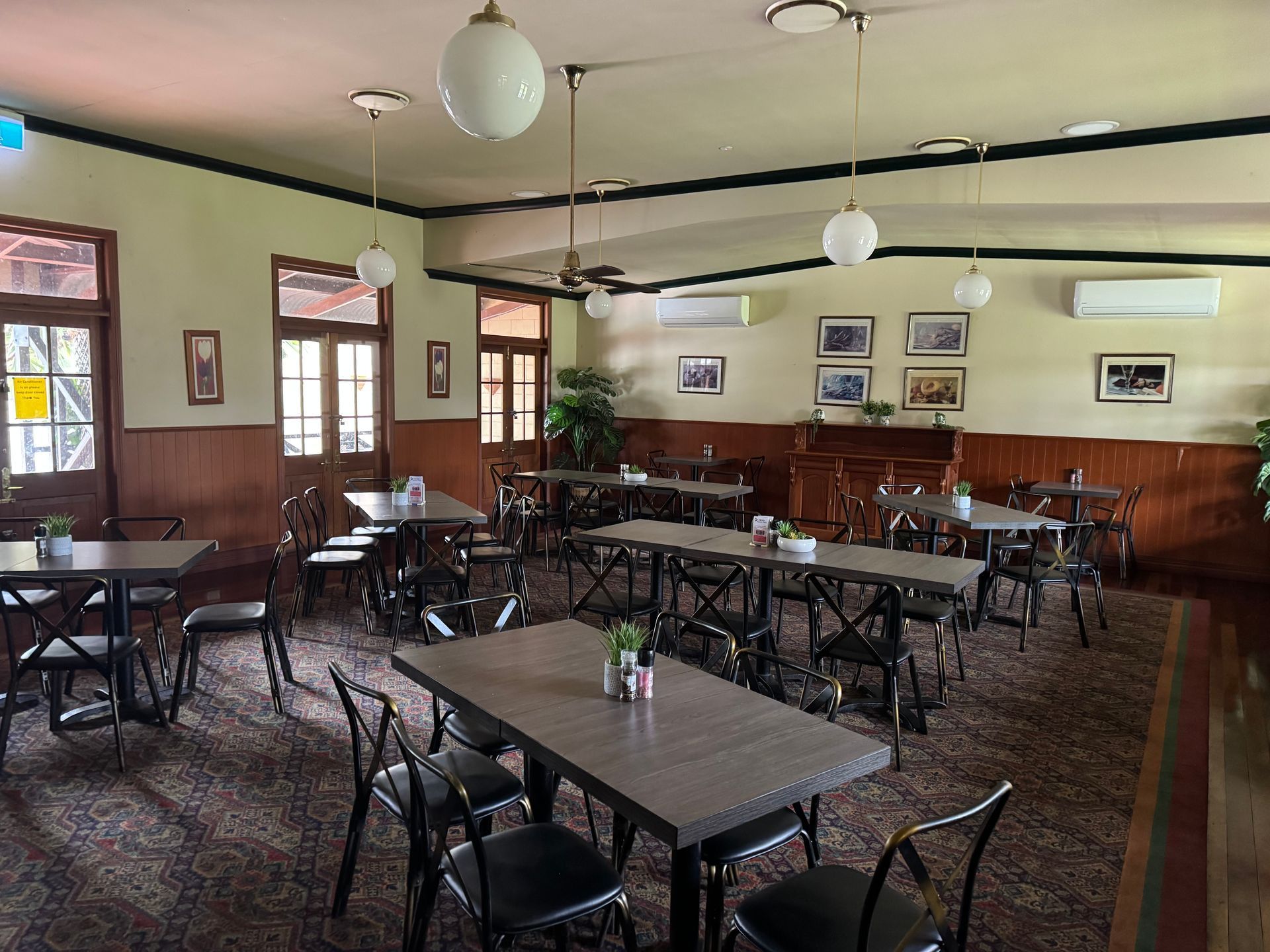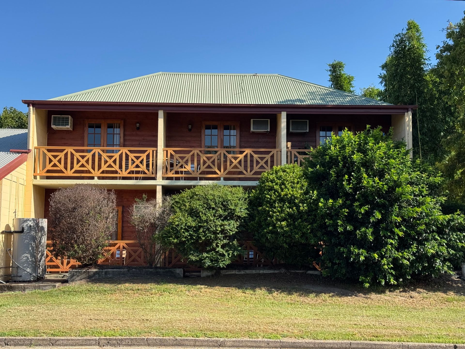 The Bororen Hotel Motel sits on the Bruce Highway south of Gladstone. The hotel is single level brick with quality timber tables & bars, beautiful French doors leading out to the many decks looking over the highway.